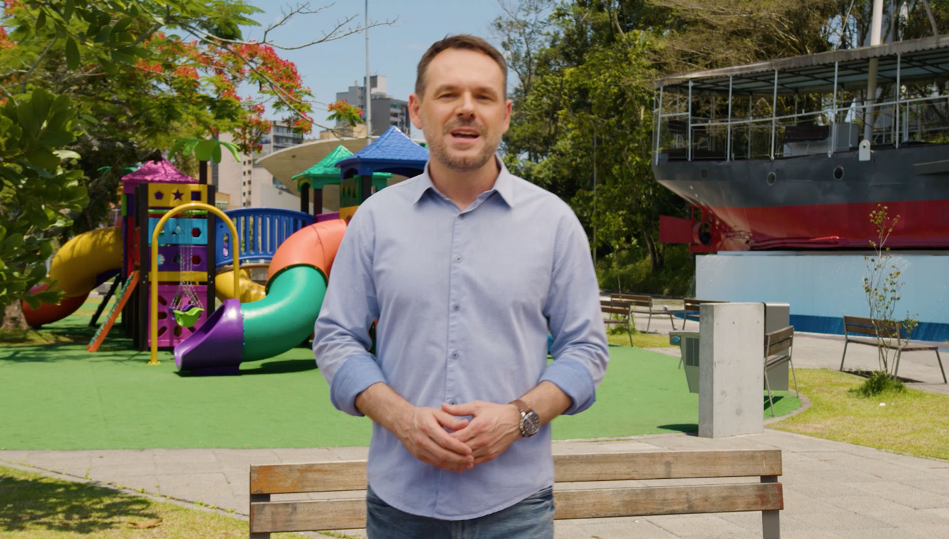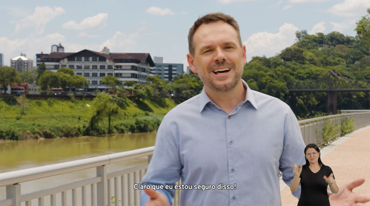 Blumenau não para. Em um ano, nos tornamos a cidade mais segura do Brasil, entregamos um novo Hospital Universitário, o Calçadão da Prainha e renovamos a frota com mais de sessenta novos ônibus, ampliando horários e melhorando o transporte de todos que vivem aqui. Só neste último ano, geramos mais de cinco mil novos empregos e mais de onze mil novas empresas foram abertas, colocando